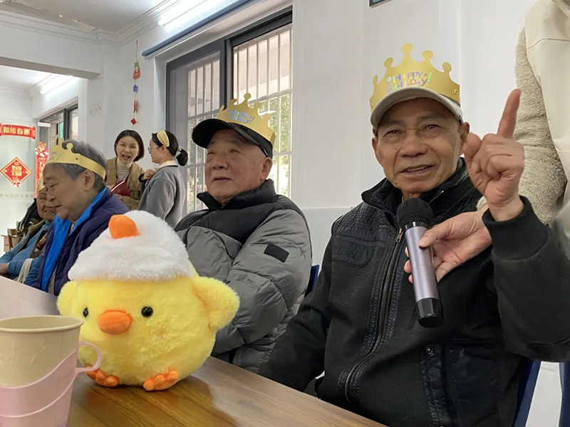 “咚咚咚……”,响起的鼓点声,是正在进行的生日会破冰游戏——击鼓传花。第一波小游戏就打开了老人之间的陌生感,拉进了彼此的距离。