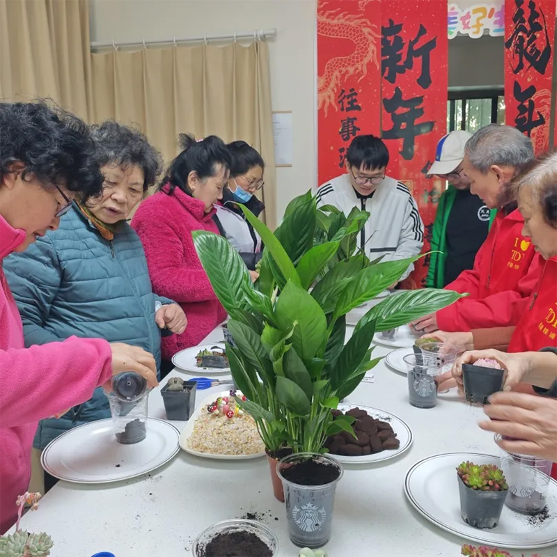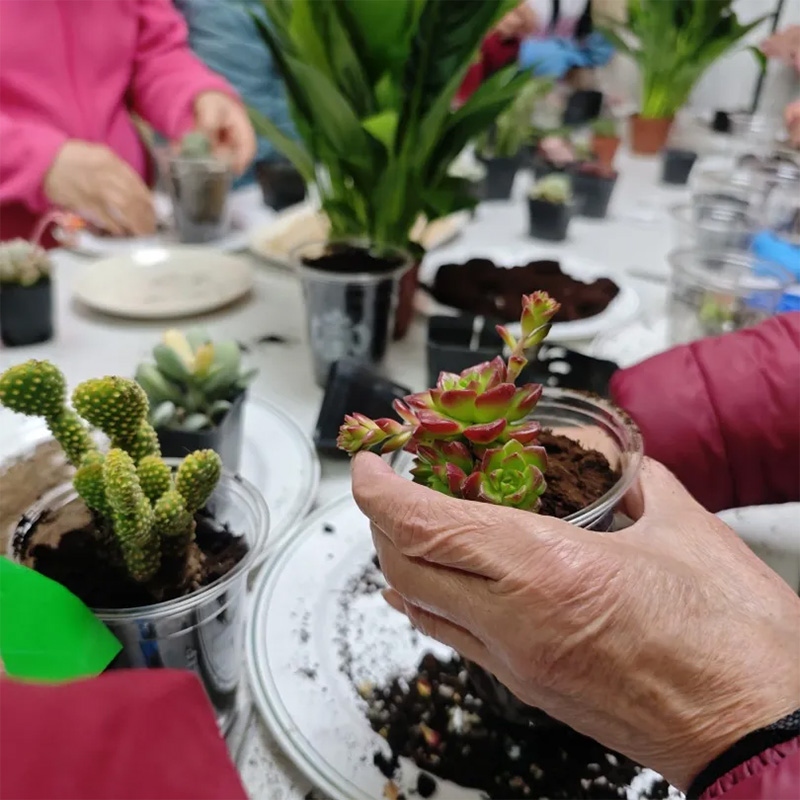 秉持着环保理念,壹棵松走进社区,邀请居民一起耕耘生机盎然的绿意。种植过程中,志愿者们与居民时而欢声笑语,交流着栽种绿植的经验,时而低头思索,认真照料着自己眼前的绿植。志愿者们也积极地向居民传授了巧用咖啡渣种植多肉植物的技巧和好处。大家满心欢喜,把对春天的希冀倾注在一盆盆可爱多姿的多肉上。现场氛围温馨和谐而又充满生机。