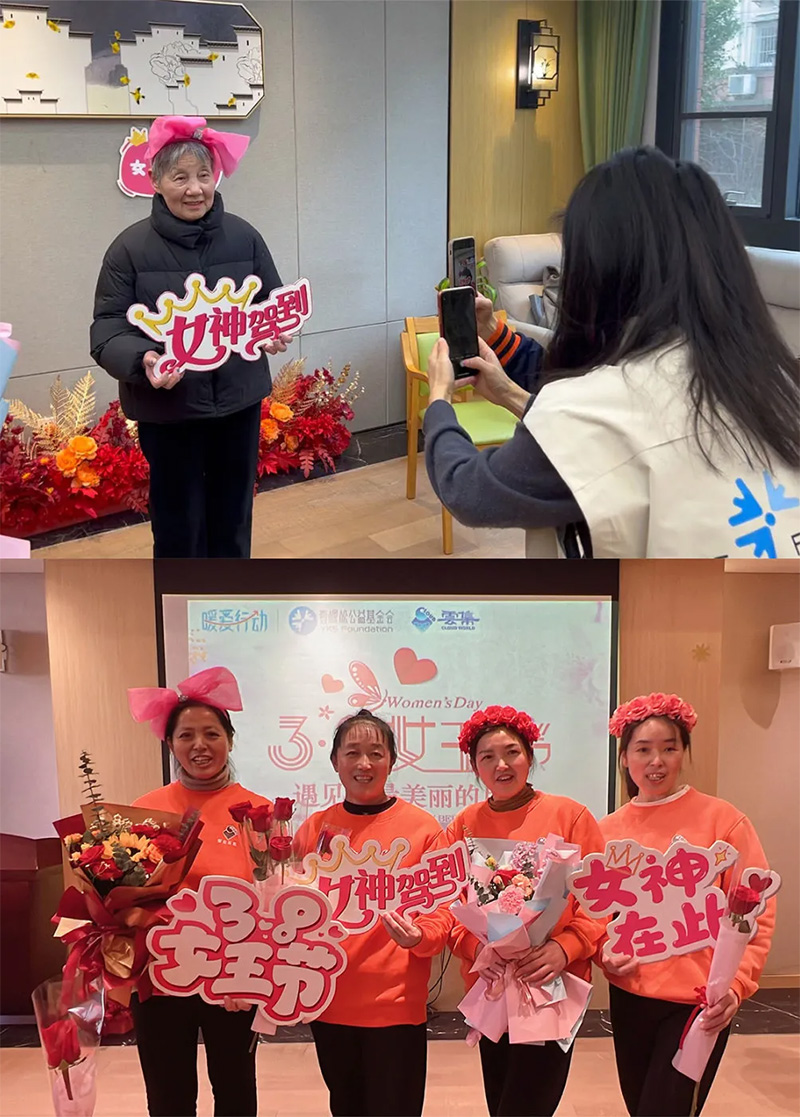3月8日,上海壹棵松公益基金会走进普陀区云集新曹杨颐养院,展开了温馨的暖爱行动——“指尖艺术 绽放风采 妆点水月 美丽永恒“活动,为女性老人们带来了美甲、化妆和戴上美丽道具拍照的欢乐体验。