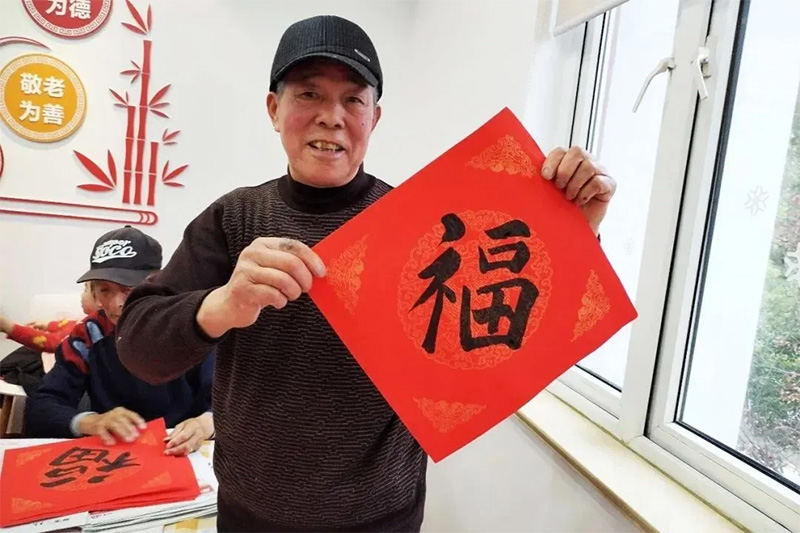 专业的书法老师耐心传授握笔姿势和“福”字的写法,将传统文化的魅力带到每一位长者身边。在轻松的氛围中,长者们挥毫泼墨,书写出了充满生气和活力的福字。