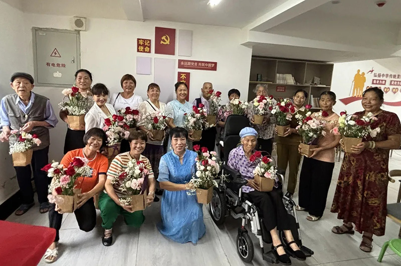 随着一朵朵鲜花的绽放,一篮篮精美的插花作品逐渐呈现在大家眼前。它们不仅装点了这个特别的日子,更装点了老年人们的心灵。