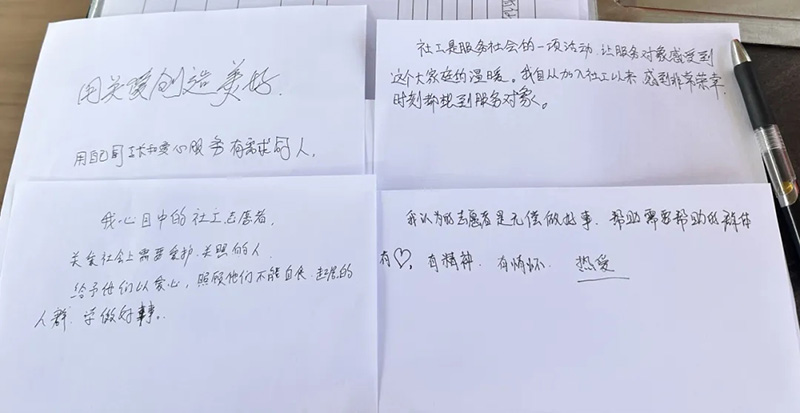 活动中志愿者们提笔在卡片上用心勾勒出自己心目中的志愿者形象。有的画出了手持爱心、面带微笑的温暖形象;有的则描绘了携手并肩、共同前行的团结画面。每一张卡片,都是对志愿者精神最真挚的诠释和向往。