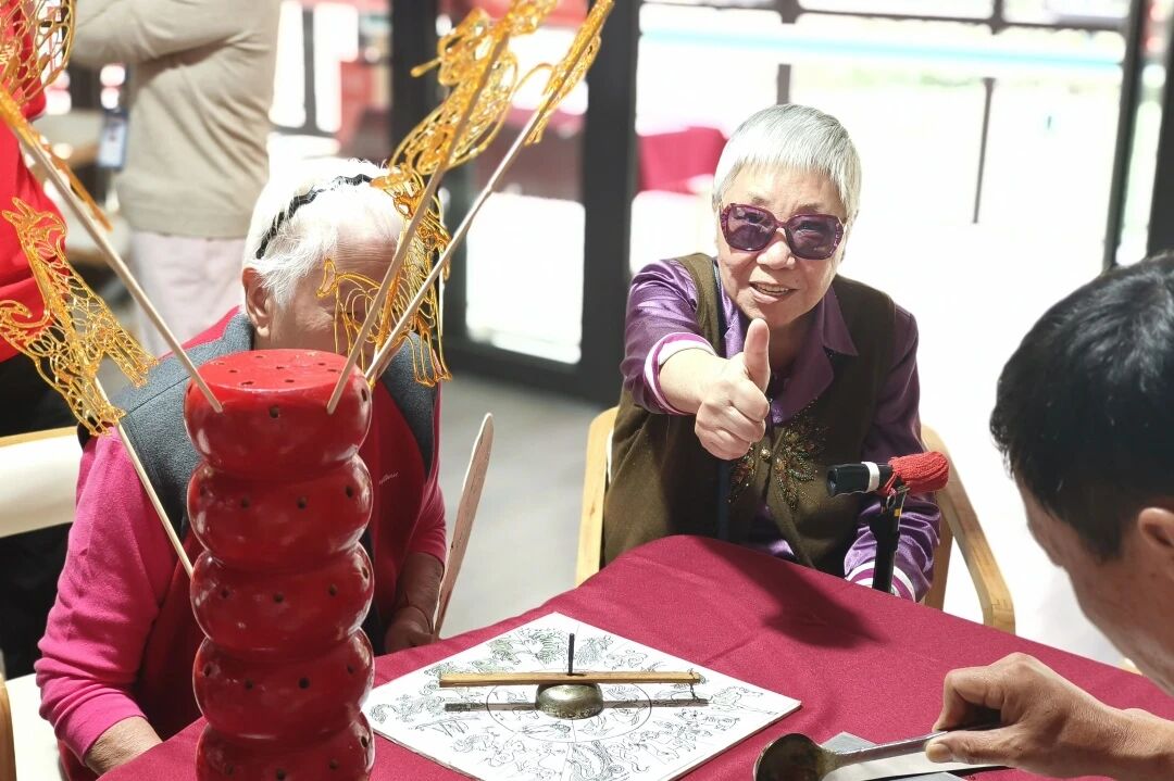 在制作漆扇的摊位前,老人们亲手挑选材料,在老师的指导下,认真制作着属于自己的漆扇。在画生肖糖人和捏生肖泥人的摊位前,老人们根据自己的生肖,选择喜欢的颜色和图案,绘制出一个个栩栩如生的生肖糖人,捏出了一个个形态各异的生肖泥人。