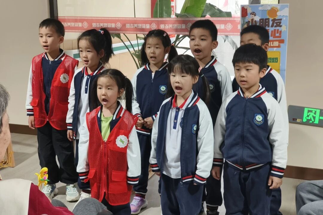 来自小精灵幼儿园的小朋友们也为老朋友们送来天籁般的歌声,并为老人们捶背捶腿,现场一派幸福祥和。