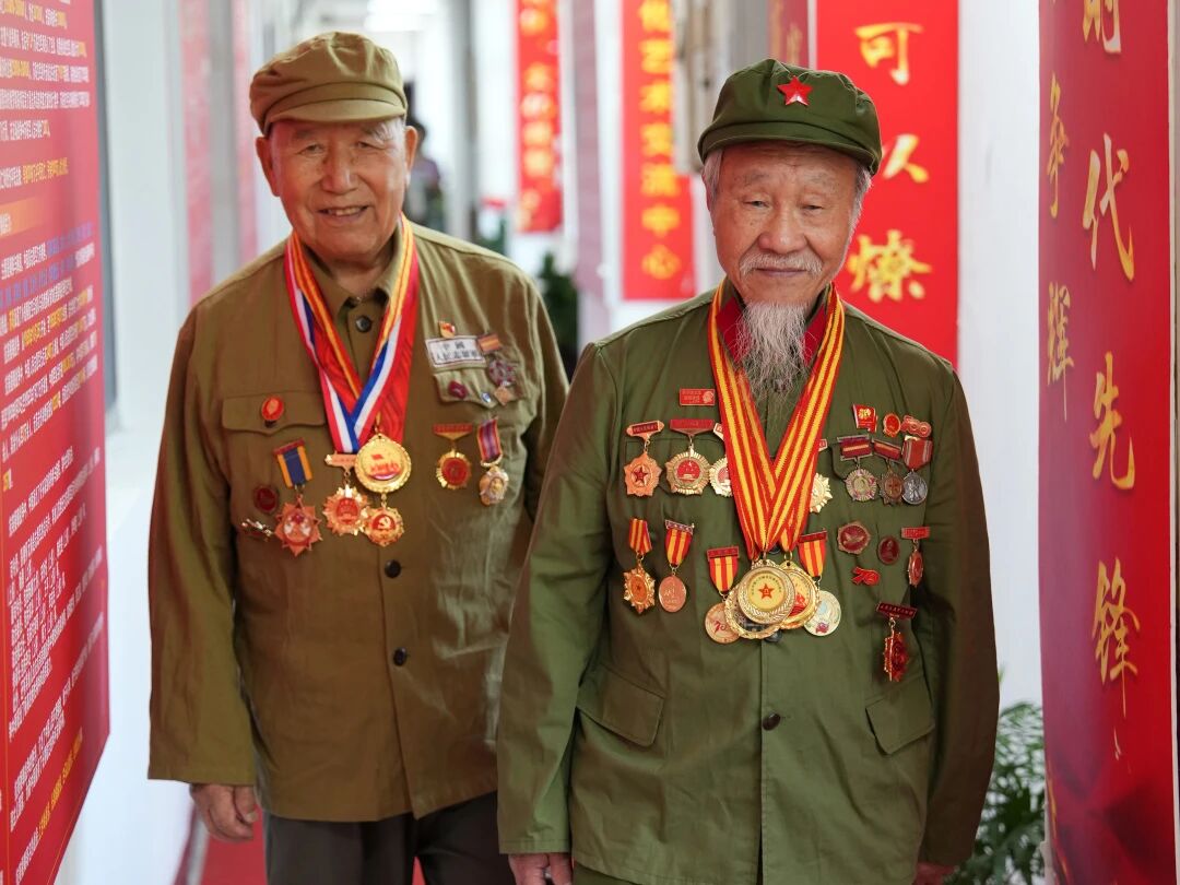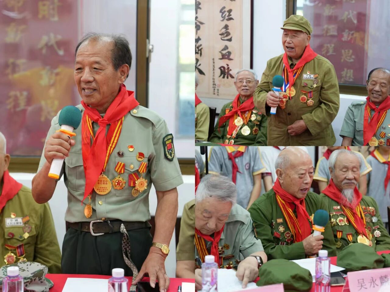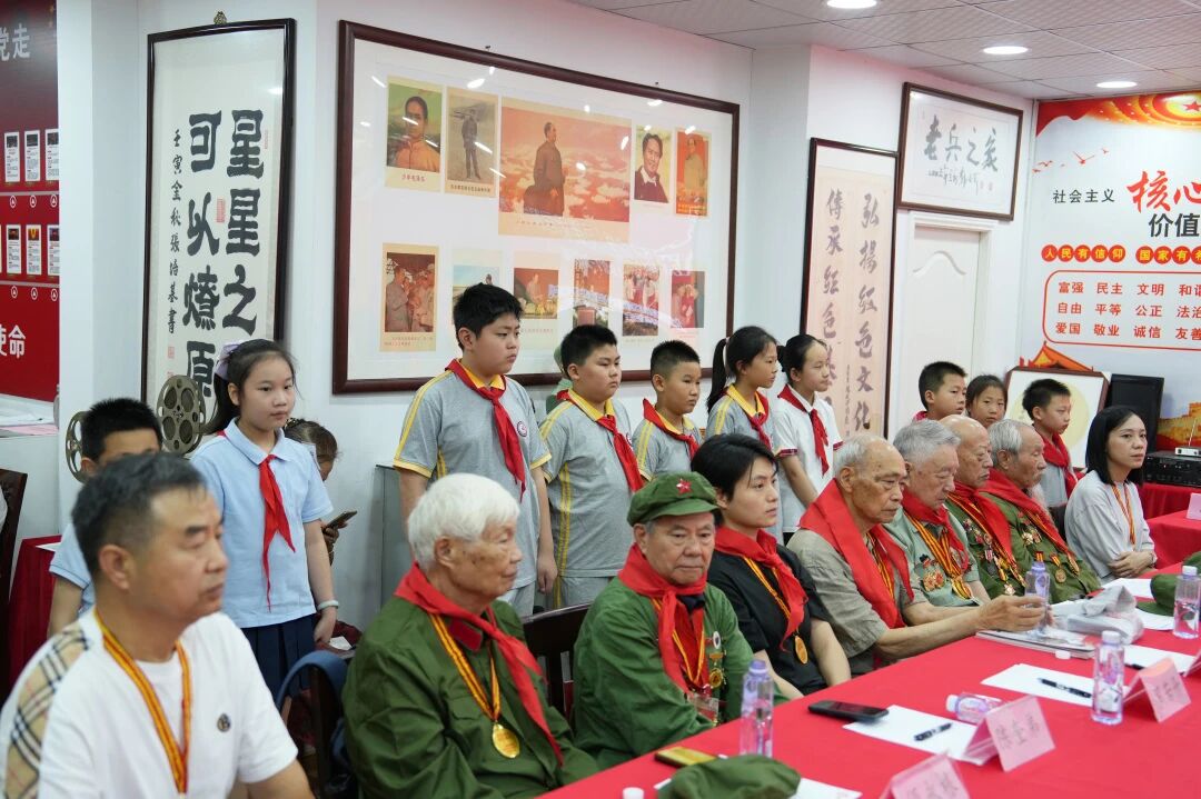 会议现场,退役军人身着昔日戎装,胸前佩戴纪念勋章和少先队员们亲手为他们系上鲜艳的红领巾,集体唱响军歌,嘹亮的歌声回荡在会场,仿佛穿越时空隧道,将在场的每一位都带回了那段光辉岁月。