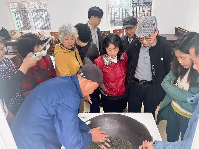 活动还邀请了炒茶师傅现场展示传统炒茶技艺,只见炒茶师傅双手上下翻飞、不断翻炒,从杀青、揉捻、翻炒到烘干,一套工序如行云流水,原本鲜嫩的茶叶最终变成了品质上乘的成品茶。不少爱好饮茶的老人还现场与炒茶师傅探讨起茶文化,分享各自的心得与喜好。