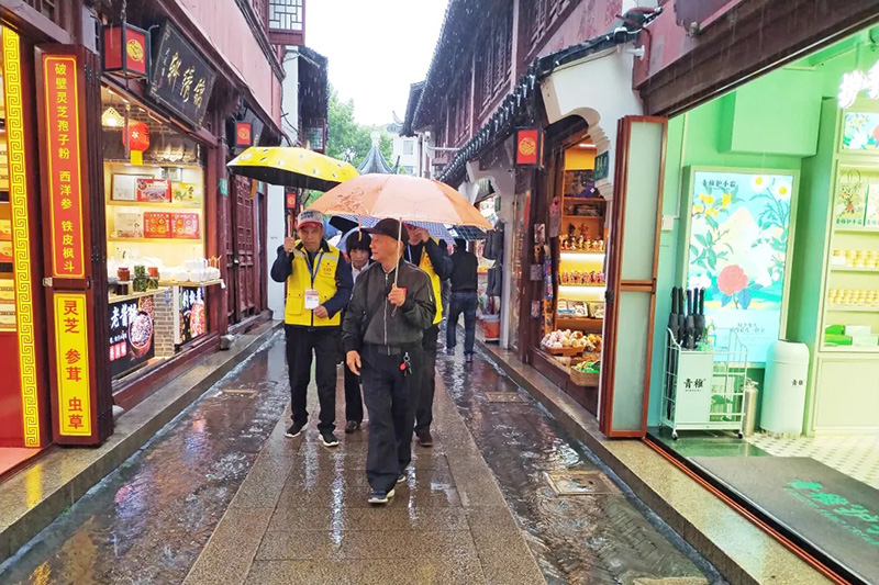 本次春游活动第二站,是游览千年古镇七宝老街。长者们不仅切身感受了这座始于北宋时期的古镇的独特韵味,还品尝了老街的海棠糕、白切羊肉、酱蹄膀、小笼包和汤圆等特色美食。