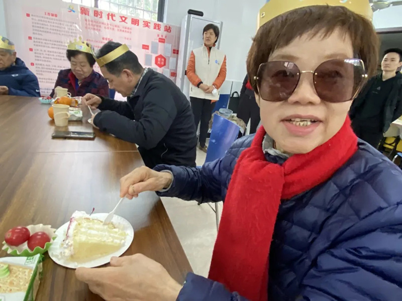 社区的热心居民,穿上笔挺的西装,现场为寿星们高歌一曲,用歌声献上自己的祝福。