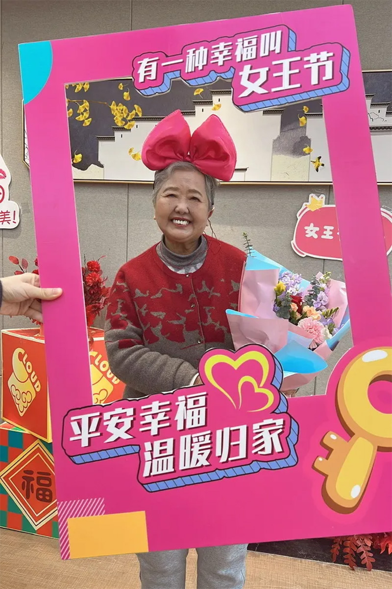 3月8日,上海壹棵松公益基金会走进普陀区云集新曹杨颐养院,展开了温馨的暖爱行动——“指尖艺术 绽放风采 妆点水月 美丽永恒“活动,为女性老人们带来了美甲、化妆和戴上美丽道具拍照的欢乐体验。
