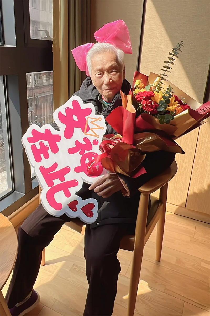 现场有一对老夫妻格外引人注目。爷爷温柔地为奶奶献上一束鲜花,奶奶满是欣喜,眼中闪烁着感动的泪花。这一刻,时间仿佛静止,他们的爱情在岁月中更加坚定。
