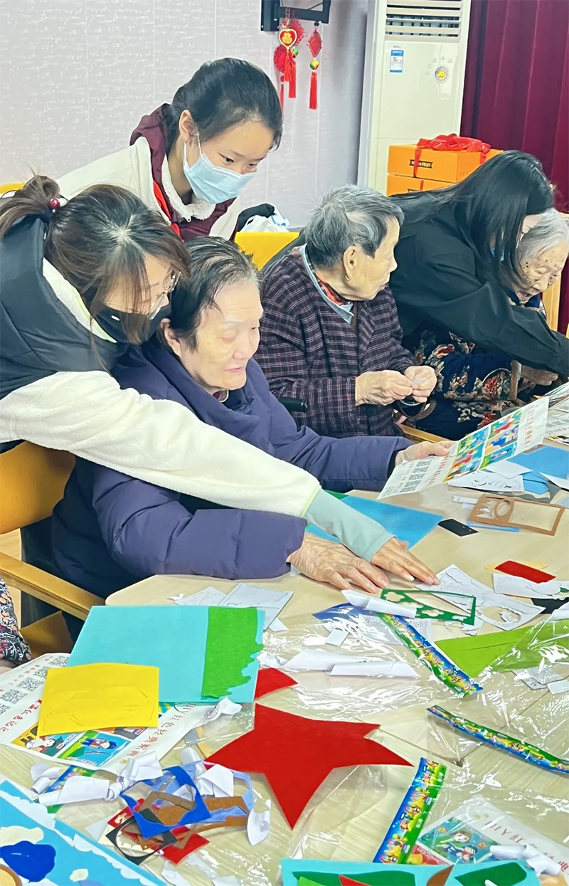 手工贴画完成之后,大家坐在一起聊天,志愿者们为老人们送上了点心和水果。整个活动现场洋溢着家庭般温馨的氛围,老人们在此享受年轻人的关心与照顾,与他们交流,也为自己的生活增添了不少乐趣和活力。活动结束后,志愿者们还自觉打扫了敬老院,清理了活动留下的垃圾,恢复了敬老院的干净整洁。