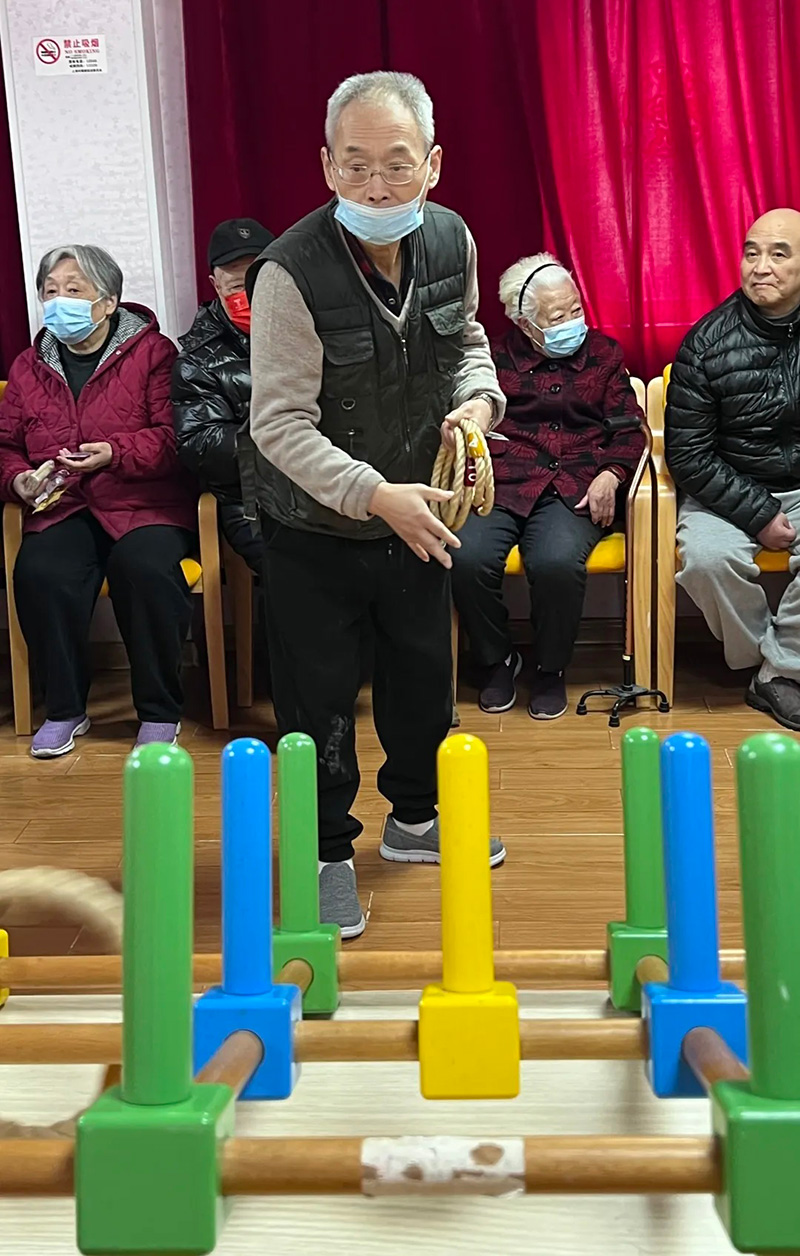游园会中,“套圈”游戏吸引了很多老人前来参加。老人们手持彩色的套圈,目光专注地瞄准目标。有的老人凭借多年的“套圈”经验,大展身手,屡战屡胜;有的老人虽稍显生疏,但他们的热情和努力也点燃了整个现场。每当有人成功套中,都会引来一阵热烈的掌声和欢呼声,志愿者们送上礼品作为奖励,现场精彩不断,笑语连连。