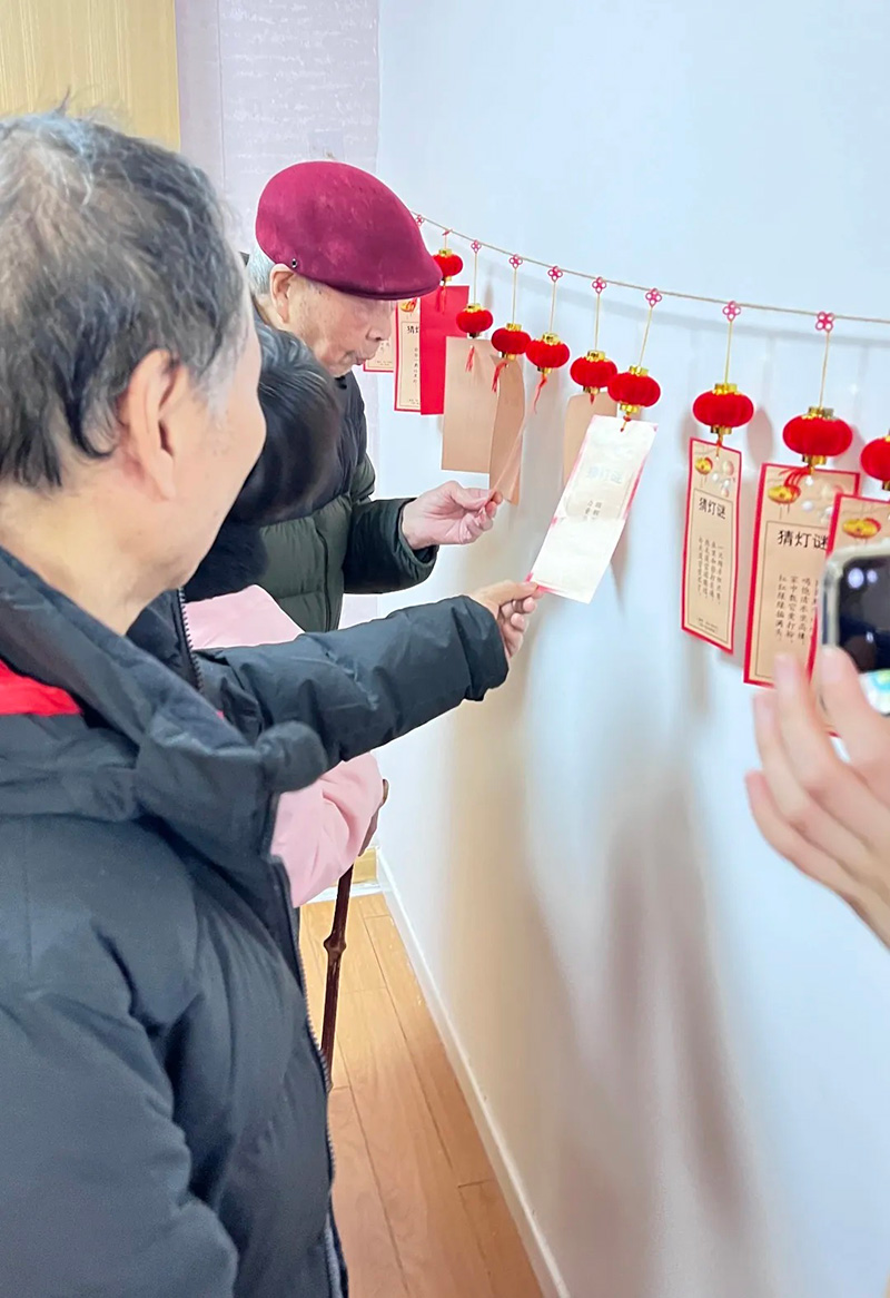 在“猜灯谜”游戏中,志愿者们为老人们准备的灯谜内容涉及生活常识、传统文化等多个方面。老人们三三两两地凑在一起热烈讨论,用时有长有短,大家在猜谜时思维激烈碰撞,豁然开朗。老人们在这一过程中不仅活跃了思维,还加深了对传统文化的认识和了解。