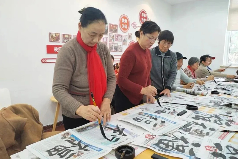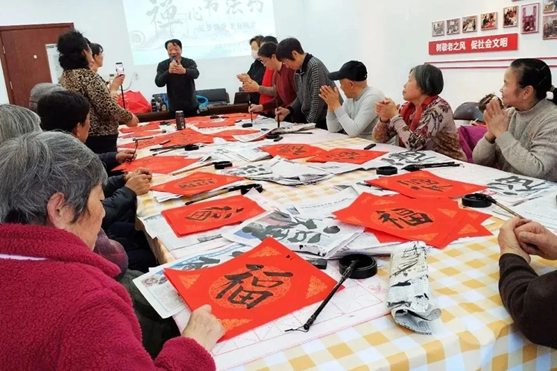 专业的书法老师耐心传授握笔姿势和“福”字的写法,将传统文化的魅力带到每一位长者身边。在轻松的氛围中,长者们挥毫泼墨,书写出了充满生气和活力的福字。