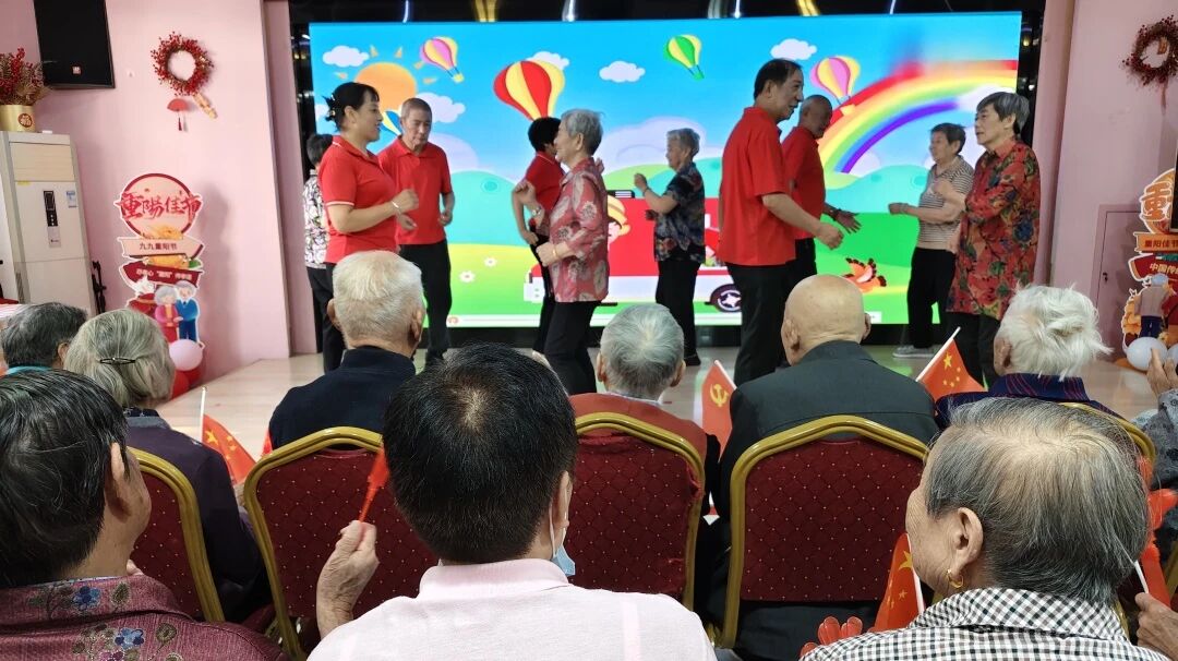 经典老歌《没有共产党就没有新中国》和《九月九的酒》引起了现场大合唱;护理员和院内长者共同演绎的《幸福拍手歌 真心英雄》更是吸引了现场所有老人跟随音乐一起动了起来,热闹非凡。