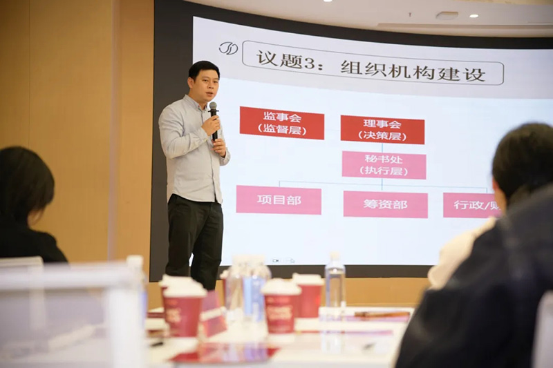 上海长风社区基金会秘书长赵美针对组织机构建设的议题,认为社区基金会组织建设从制度概念到实际操作,要围绕基金会章程、专项基金会管理办法两个方面进行架构。