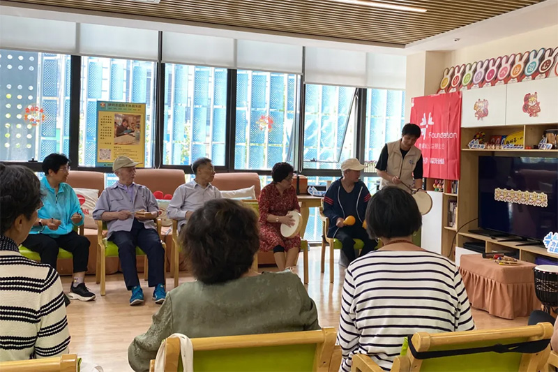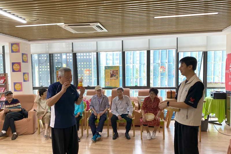 音乐环节更是精彩纷呈。老人们积极参与了“异口同声”游戏,他们洪亮的声音和默契的配合展现了老年群体独特的活力与魅力。紧接着的“声音的传递”游戏,老人们通过拍手和跺脚的方式传递声音,不仅锻炼了身体,还增进了彼此间的情感联系。志愿者老师为老人们详细介绍了各种乐器的特点和指挥动作,老人们聚精会神地学习,努力将手势与音乐的节奏相结合。在“循声定位”游戏中,老人们展现出了出色的听力和反应能力。最后,合奏环节将活动推向了高潮,老人们手持乐器,与老师共同演奏出一曲和谐美妙的乐章,每一个音符都凝聚着他们的热情与努力,每一次合奏都展现了他们的团结与协作。