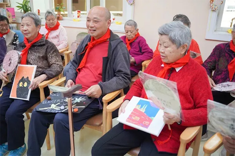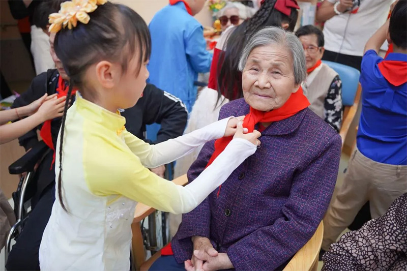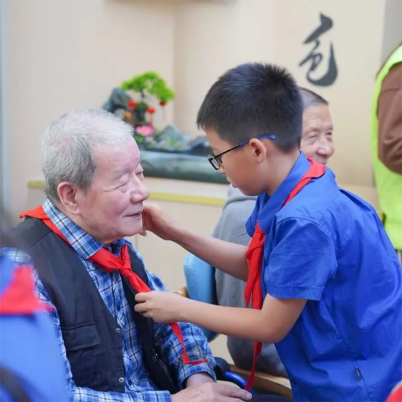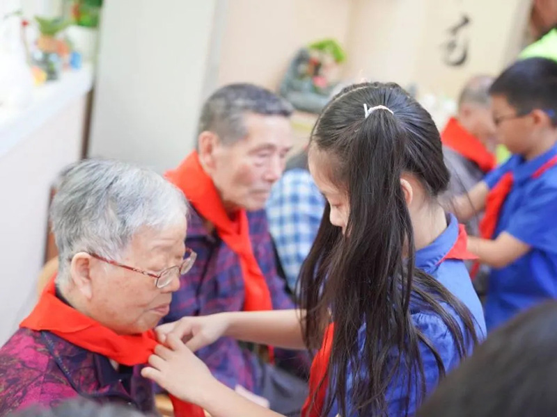 精彩的表演结束,大家围坐在老人身边,小志愿者们与老人们进行了一次次心与心的交流。老人们面露回忆的神色,细细讲述着自己儿时的故事与过去的经历。在充满岁月的声音中,志愿者们仿佛穿越时光隧道,与老人们一同回到了那个充满回忆与荣光的年代。老人们慈爱地与小志愿者们进行互动,看着孩子们的眼睛里闪烁着好奇与敬仰,老人们由衷地感到满足与幸福。