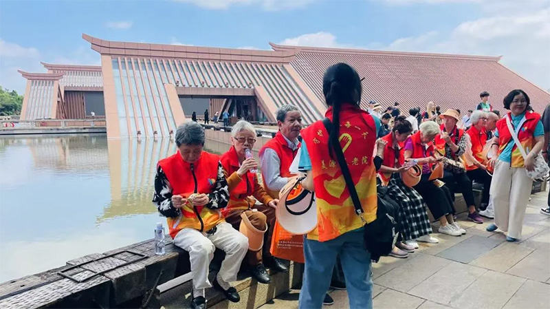 从古代陶土瓦罐到新石器时代的智慧,从明清热闹的市井街巷到民国时期的繁荣景象,长者们在悠闲的步伐中细品这段历史长卷。期间,贴心的志愿者们不断为他们补充水分和体力,悉心陪伴,确保每一段旅程都愉快而安心。