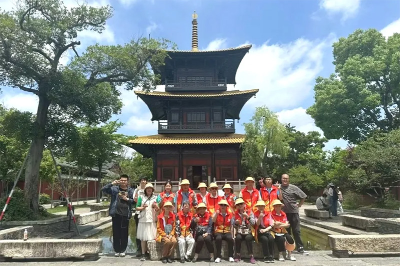 接着,他们来到富林照壁,感受广富林“归舟泝横浦,点点十幅蒲”的盛景,并在此留下了难忘的合影。