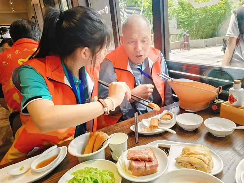 旅程的最后一站是苏小柳,长者们品尝到了营养健康的苏式手工点心,味蕾得到了极致的满足,心情也因此更加欢愉。